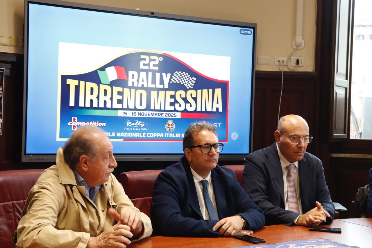 Messina, 7 novembre – Nella Sala Ovale del Comune è stato presentato il 22° Rally Tirreno Messina. I particolati della finale Nazionale della Coppa Italia Rally ACI Sport e tutte le iniziative correlate sono state illustrate dagli organizzatori di Top Competition, con gli Assessori comunali allo sport Massimo Finocchiaro ed alla Protezione Civile Massimiliano Minutoli, il Presidente dell’Automobile Club Messina Massimo Rinaldi, il primo Cittadino di Roccavaldina Salvatore Visalli, l’Assessore allo Sport di Torregrotta Raffaele Nastasi ed i rappresentanti dei maggiori brand partner tra cui Grimaldi Lines, Vadalà Auto, Pirelli e Caronte & Tourist. Presenti anche alcuni dirigenti Federali tra cui il Fiduciario provinciale ACI Sport Nico Salvo, il Supervisore Bernardo Di Caro e Massimo Cambria componente della Commissione Rally ACI Sport. La Presidente Top Competition Maria Grazia Bisazza ha affidato il proprio messaggio a Federica Battaglia, la quale ha sottolineato la condivisione di intenti con tutte le realtà che affiancano l’organizzazione di un evento che è dell’intero territorio ed ha evidenziato la costante attenzione alle figure professionali che compongono lo staff della macchina organizzativa ad iniziare dal Direttore di Gara Internazionale Mauro Zambelli.
